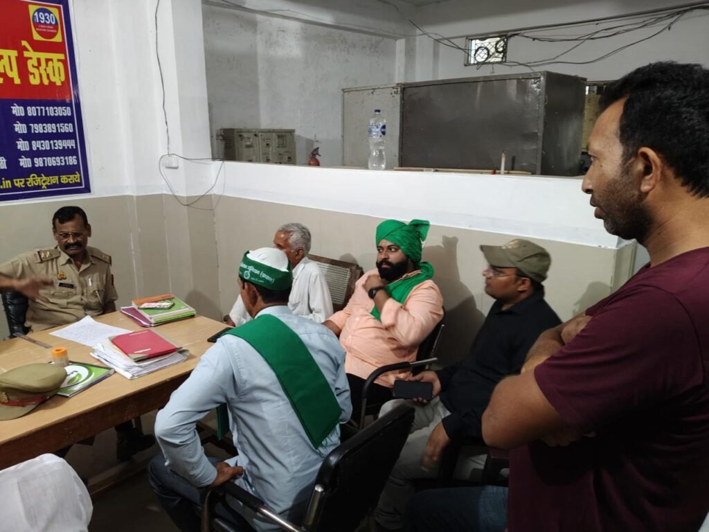 दिनांक 14-10-2024 को भारतीय किसान यूनियन (प्रधान) के बिजनौर जिला अध्यक्ष चौधरी विशाल बालियान जी अपनी टीम के साथ कस्बा बढ़ापुर मोहल्ला नौमी निवासी अहमर अली के निवास स्थान पर पहुंचे अहमर अली को 3 दीन पहले बढ़ापुर वन रेंजर द्वारा रात्रि मे उठाया गया था। जिनको वन अधिकारी द्वारा पूरी रात थर्ड डिग्री द्वारा टॉर्चर किया गया था। जिनका हाल-चाल जानने बालीयान जी टीम के साथ पहुंचे। उसके बाद भारतीय किसान यूनियन (प्रधान) के पदाधिकारी पीड़ित किसान भाई को लेकर बढ़ापुर थाने पहुंचे एवं मौके पर बढ़ापुर वन रेंजर को बुलाया। वन रेंजर नशे की हालत में थाने में पहुंचा एवं मौके पर अपनी गलती मानी। भारतीय किसान यूनियन (प्रधान) के पदाधिकारी ने रेंजर के खिलाफ उचित कार्रवाई की मांग की। इस मौके पर राष्ट्रीय प्रवक्ता प्रतिनिधि चन्द्रपाल सिंह गहलौत जी, जिला अध्यक्ष बिजनौर चौधरी विशाल बालियान जी, जिला कोषाध्यक्ष परम देशवाल जी, नगीना तहसील अध्यक्ष कपिल देशवाल जी, बढ़ापुर नगर अध्यक्ष रघुनाथ जी, आदिल कुरेशी जी, मनदीप भाई, शिवम भाई, अल्ताफ भाई, दिले राम सिंह जी, शेखर जी, आदि पदाधिकारी एवं कार्यकर्ता उपस्थित रहे।