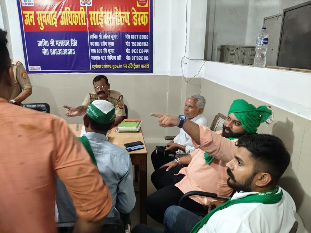 दिनांक 14-10-2024 को भारतीय किसान यूनियन (प्रधान) के बिजनौर जिला अध्यक्ष चौधरी विशाल बालियान जी अपनी टीम के साथ कस्बा बढ़ापुर मोहल्ला नौमी निवासी अहमर अली के निवास स्थान पर पहुंचे अहमर अली को 3 दीन पहले बढ़ापुर वन रेंजर द्वारा रात्रि मे उठाया गया था। जिनको वन अधिकारी द्वारा पूरी रात थर्ड डिग्री द्वारा टॉर्चर किया गया था। जिनका हाल-चाल जानने बालीयान जी टीम के साथ पहुंचे। उसके बाद भारतीय किसान यूनियन (प्रधान) के पदाधिकारी पीड़ित किसान भाई को लेकर बढ़ापुर थाने पहुंचे एवं मौके पर बढ़ापुर वन रेंजर को बुलाया। वन रेंजर नशे की हालत में थाने में पहुंचा एवं मौके पर अपनी गलती मानी। भारतीय किसान यूनियन (प्रधान) के पदाधिकारी ने रेंजर के खिलाफ उचित कार्रवाई की मांग की। इस मौके पर राष्ट्रीय प्रवक्ता प्रतिनिधि चन्द्रपाल सिंह गहलौत जी, जिला अध्यक्ष बिजनौर चौधरी विशाल बालियान जी, जिला कोषाध्यक्ष परम देशवाल जी, नगीना तहसील अध्यक्ष कपिल देशवाल जी, बढ़ापुर नगर अध्यक्ष रघुनाथ जी, आदिल कुरेशी जी, मनदीप भाई, शिवम भाई, अल्ताफ भाई, दिले राम सिंह जी, शेखर जी, आदि पदाधिकारी एवं कार्यकर्ता उपस्थित रहे।